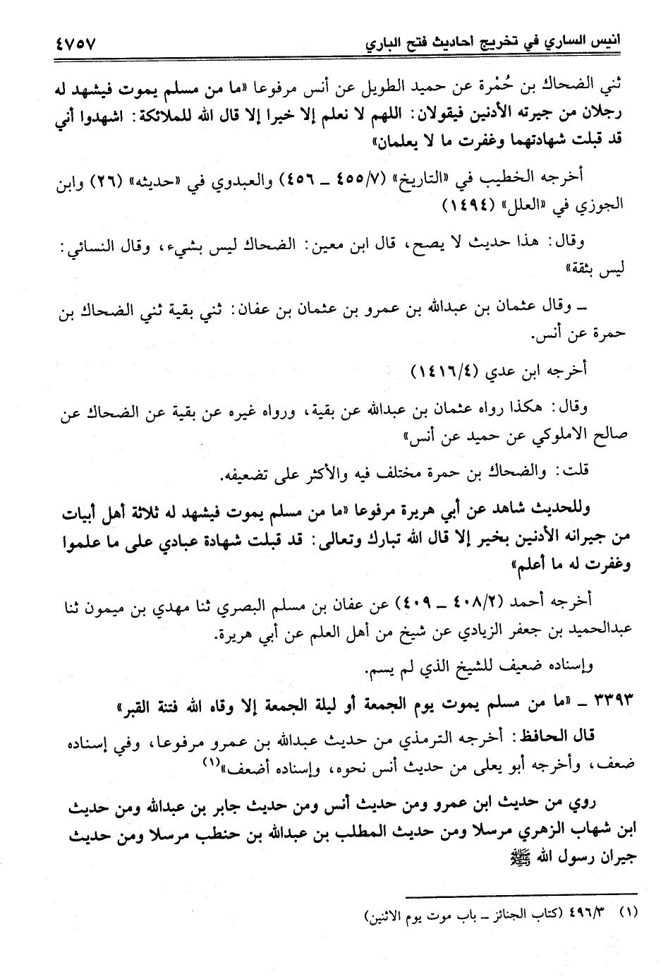 3393 - "ما من مسلم يموت يوم الجمعة أو ليلة الجمعة إلا وقاه الله فتنة القبر"