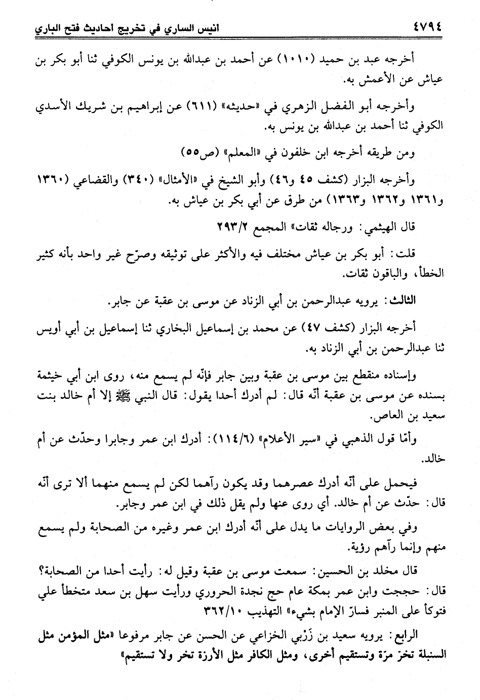 كتاب أنيس الساري (تخريج أحاديث فتح الباري) (اسم الجزء: 7)
