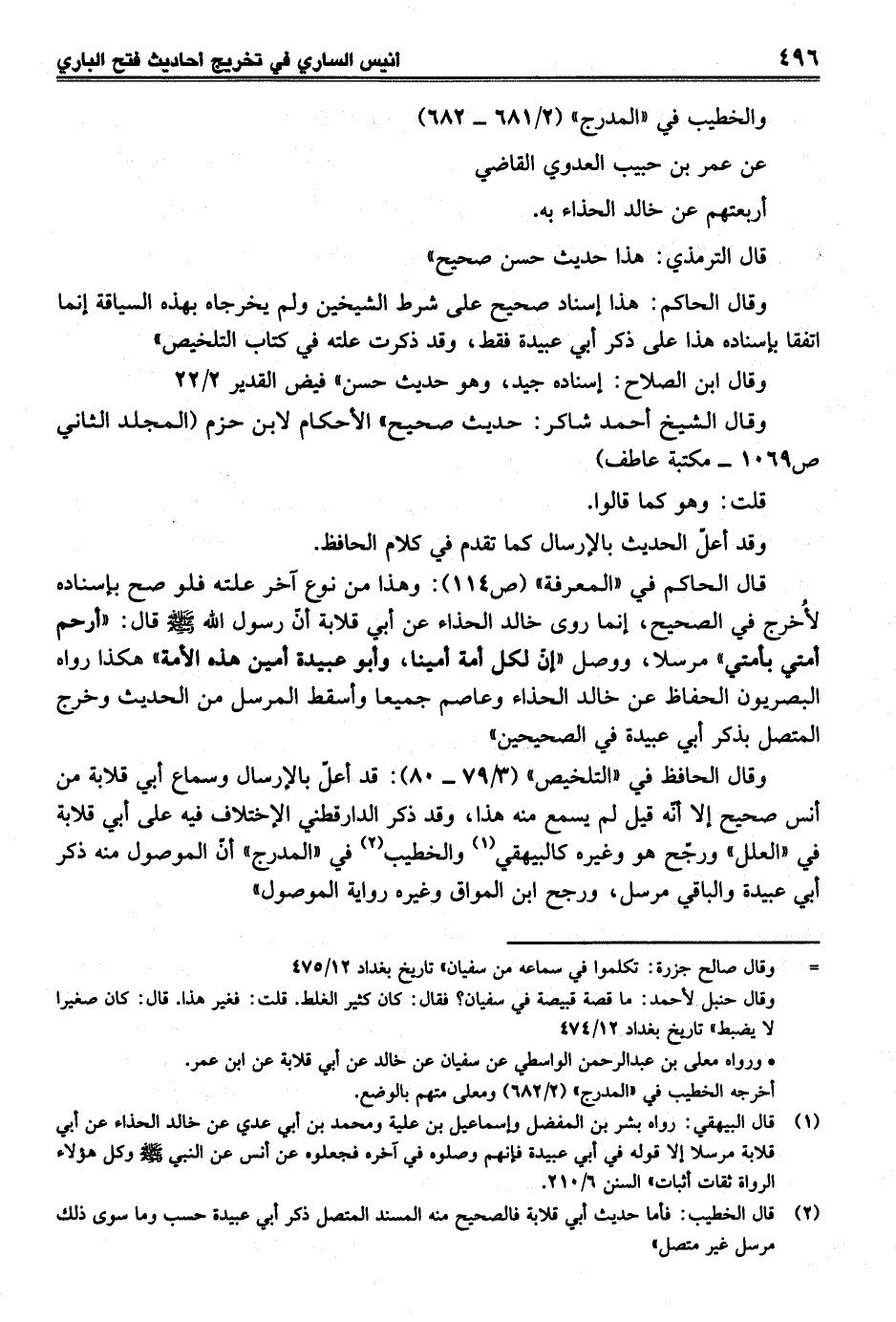 (¬2) قال الخطيب: فأما حديث أبي قلابة فالصحيح منه المسند المتصل ذكر أبي عبيدة حسب وما سوى ذلك مرسل غير متصل"