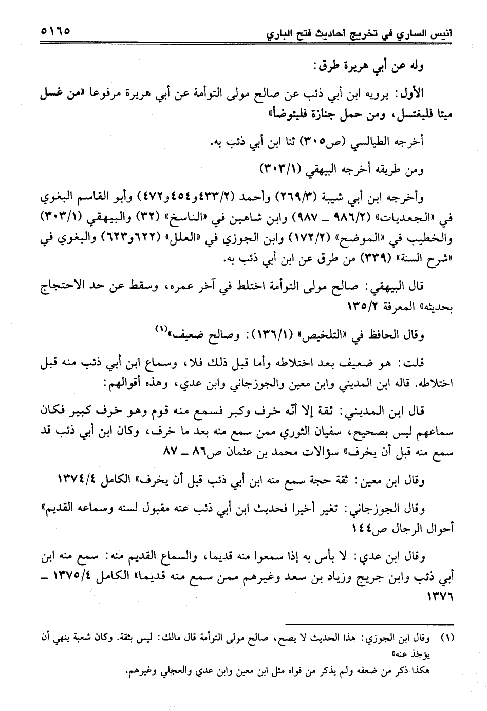 (¬1) وقال ابن الجوزي: هذا الحديث لا يصح، صالح مولى التوأمة قال مالك: ليس بثققة. وكان شعبة ينهي أن يؤخذ عنه"