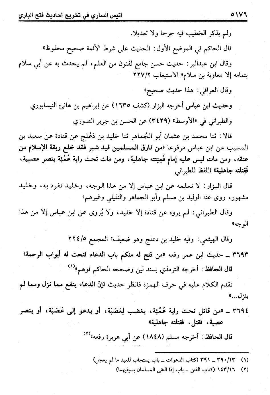 3694 - "من قاتل تحت راية عُمِّيَّة، يغضب لِعَصَبَة، أو يدعو إلى عَصَبَة، أو ينصر عصبة، فقتل، فقتلته جاهلية"
