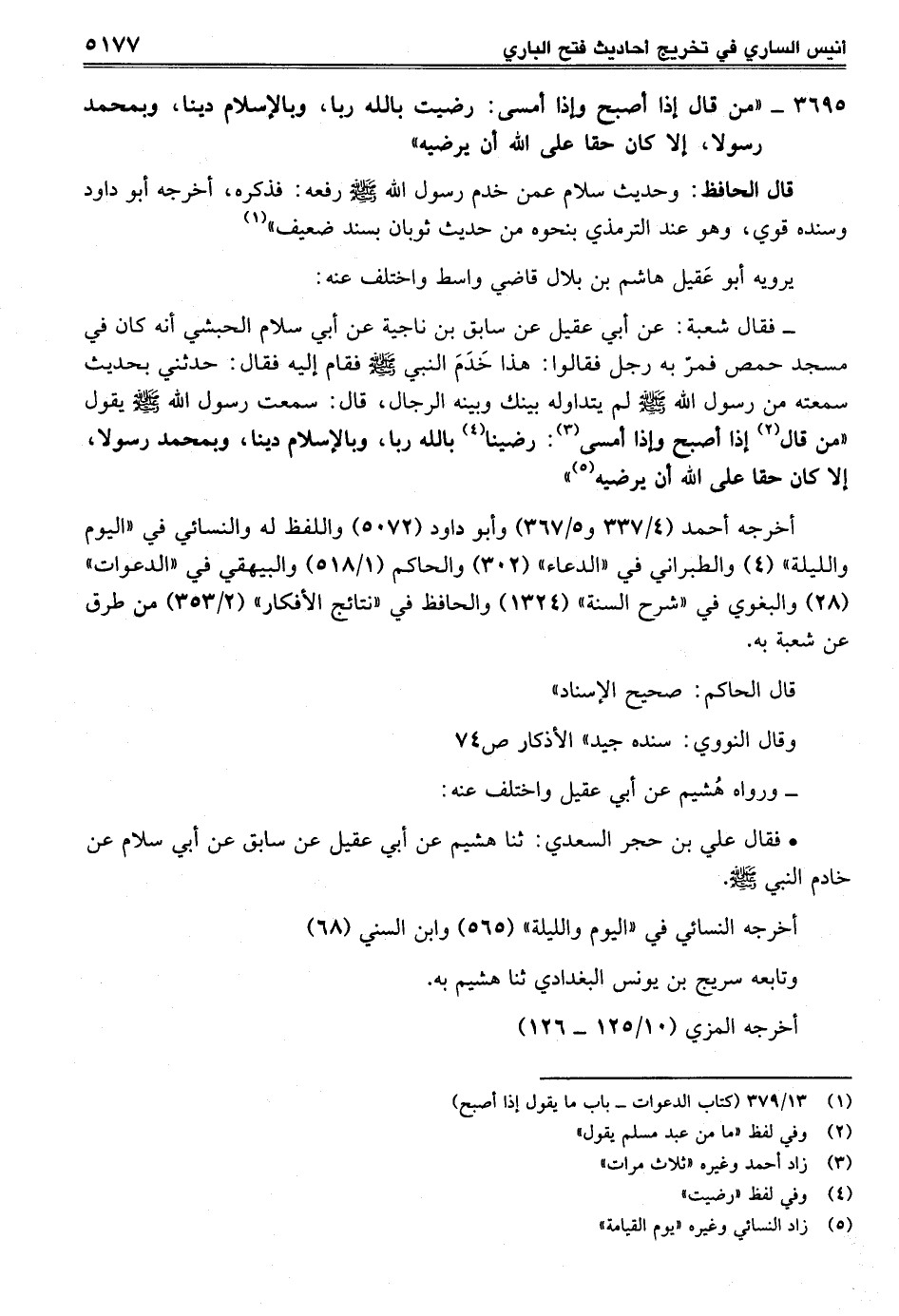 قال الحافظ: وحديث سلام عمن خدم رسول الله صلى الله عليه وسلم رفعه: فذكره، أخرجه أبو داود وسنده قوي، وهو عند الترمذي بنحوه من حديث ثوبان بسند ضعيف" (¬1)