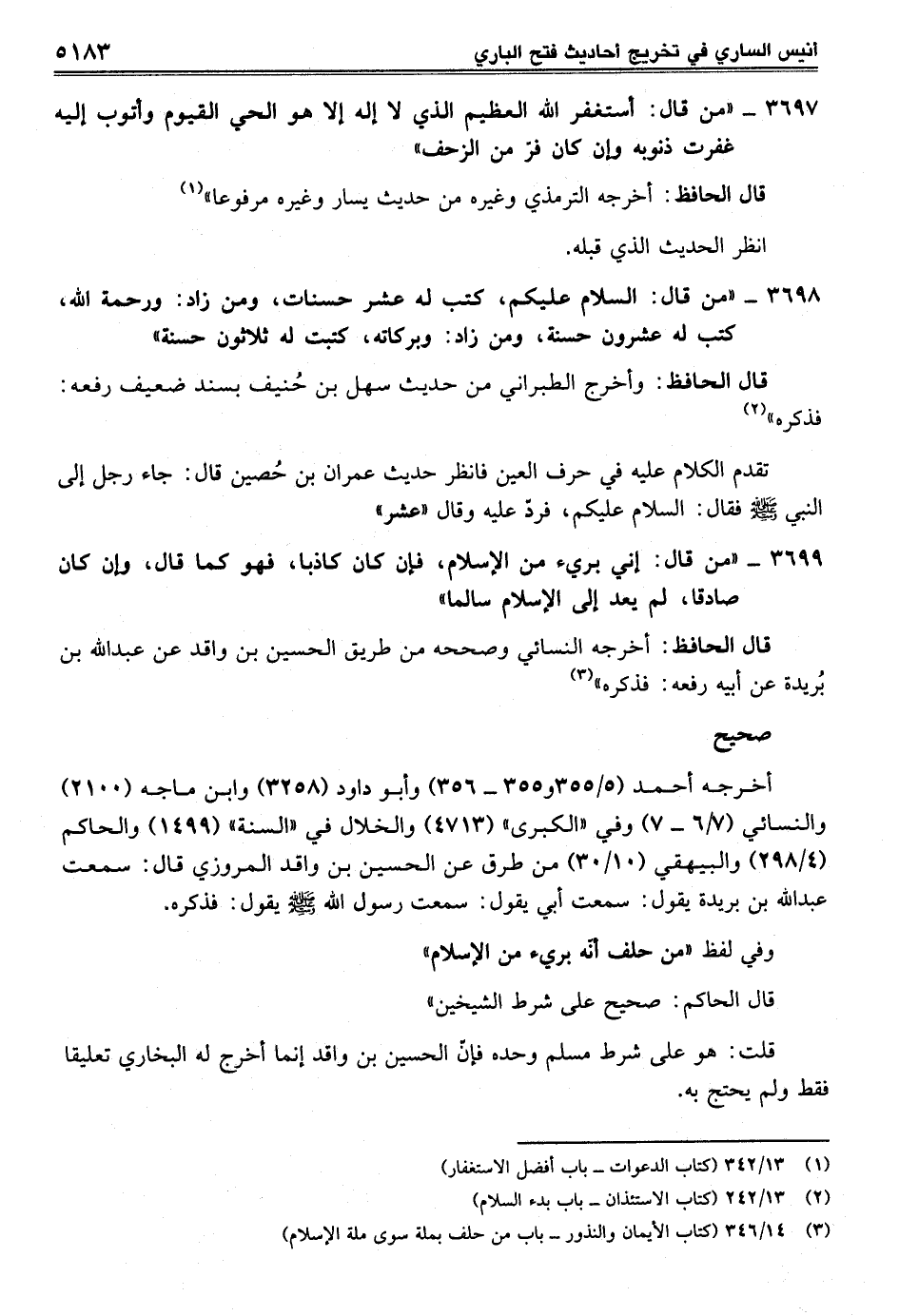3699 - "من قال: إني بريء من الإسلام، فإن كان كاذبا، فهو كما قال، وإن كان صادقا، لم يعد إلى الإسلام سالما"