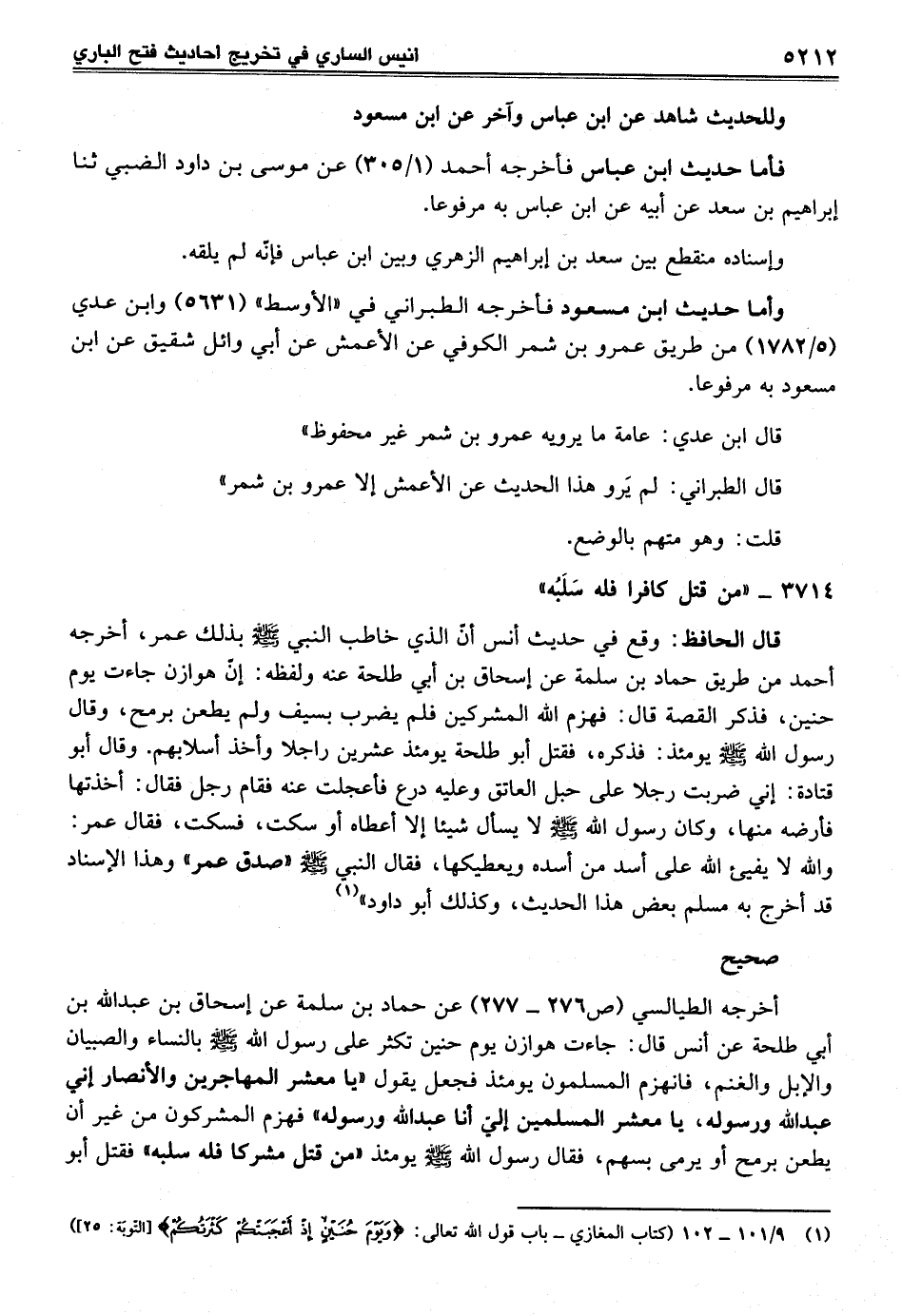 (¬1) 9/ 101 - 102 (كتاب المغازي- باب قول الله تعالى: {وَيَوْمَ حُنَيْنٍ إِذْ أَعْجَبَتْكُمْ كَثْرَتُكُمْ} [التوبة: 25])