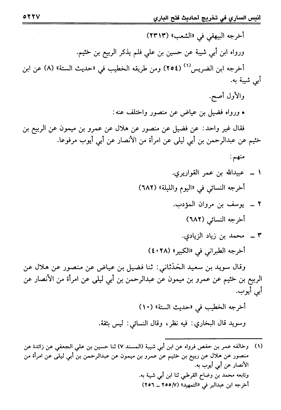 (¬1) وخالفه عمر بن حفص فرواه عن ابن أبي شيبة (المسند 7) ثنا حسين بن علي الجعفي عن زائدة عن منصور عن هلال عن ربيع بن خثيم عن عمرو بن ميمون عن عبد الرحمن بن أبي ليلى عن امرأة من الأنصار عن أبي أيوب به.