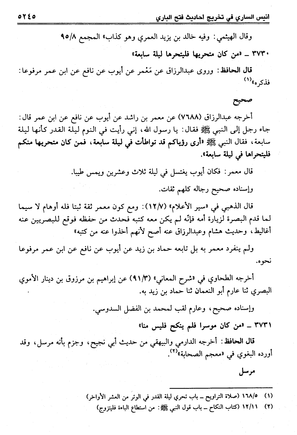 كتاب أنيس الساري (تخريج أحاديث فتح الباري) (اسم الجزء: 7)