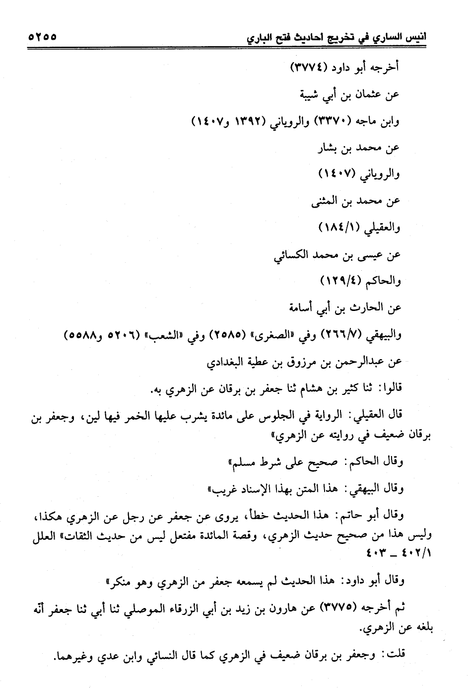 قال العقيلي: الرواية في الجلوس على مائدة يشرب عليها الخمر فيها لين، وجعفر بن برقان ضعيف في روايته عن الزهري"