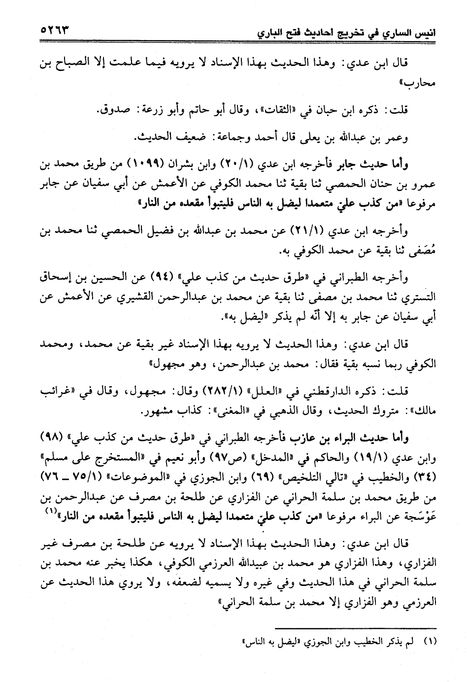 كتاب أنيس الساري (تخريج أحاديث فتح الباري) (اسم الجزء: 7)