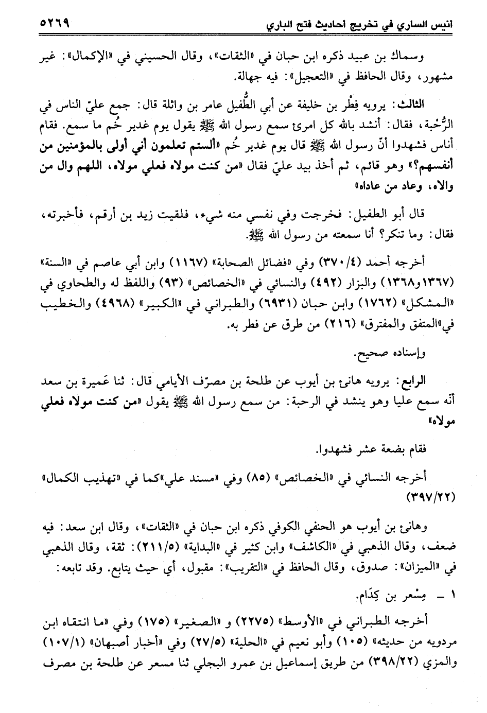 الرابع: يرويه هانئ بن أيوب عن طلحة بن مصرّف الأيامي قال: ثنا عَميرة بن سعد أنّه سمع عليا وهو ينشد في الرحبة: من سمع رسول الله - صلى الله عليه وسلم - يقول "من كنت مولاه فعلي مولاه"