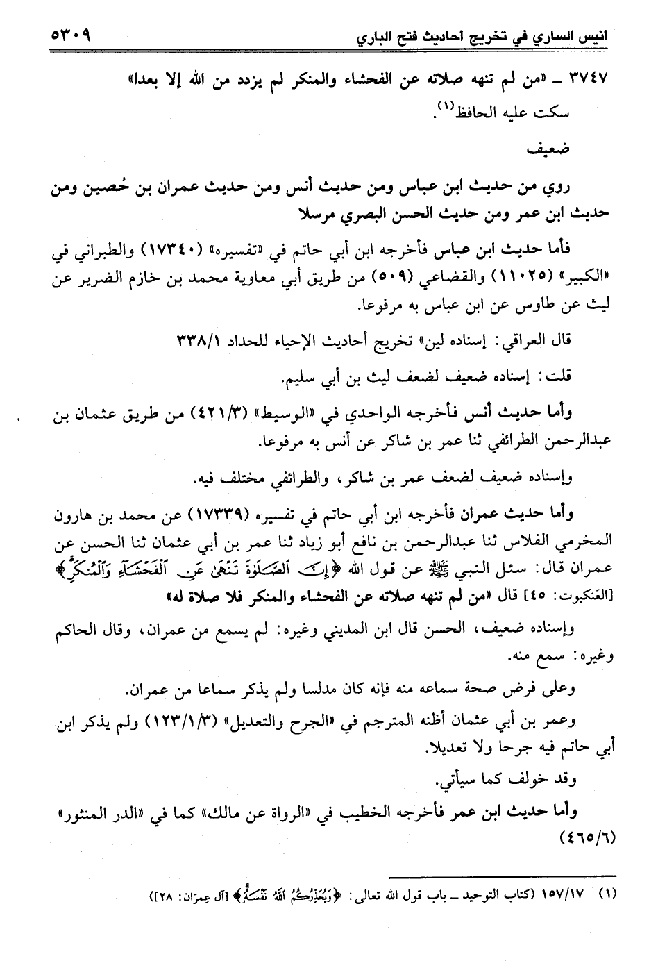 3747 - "من لم تنهه صلاته عن الفحشاء والمنكر لم يزدد من الله إلا بعدا"