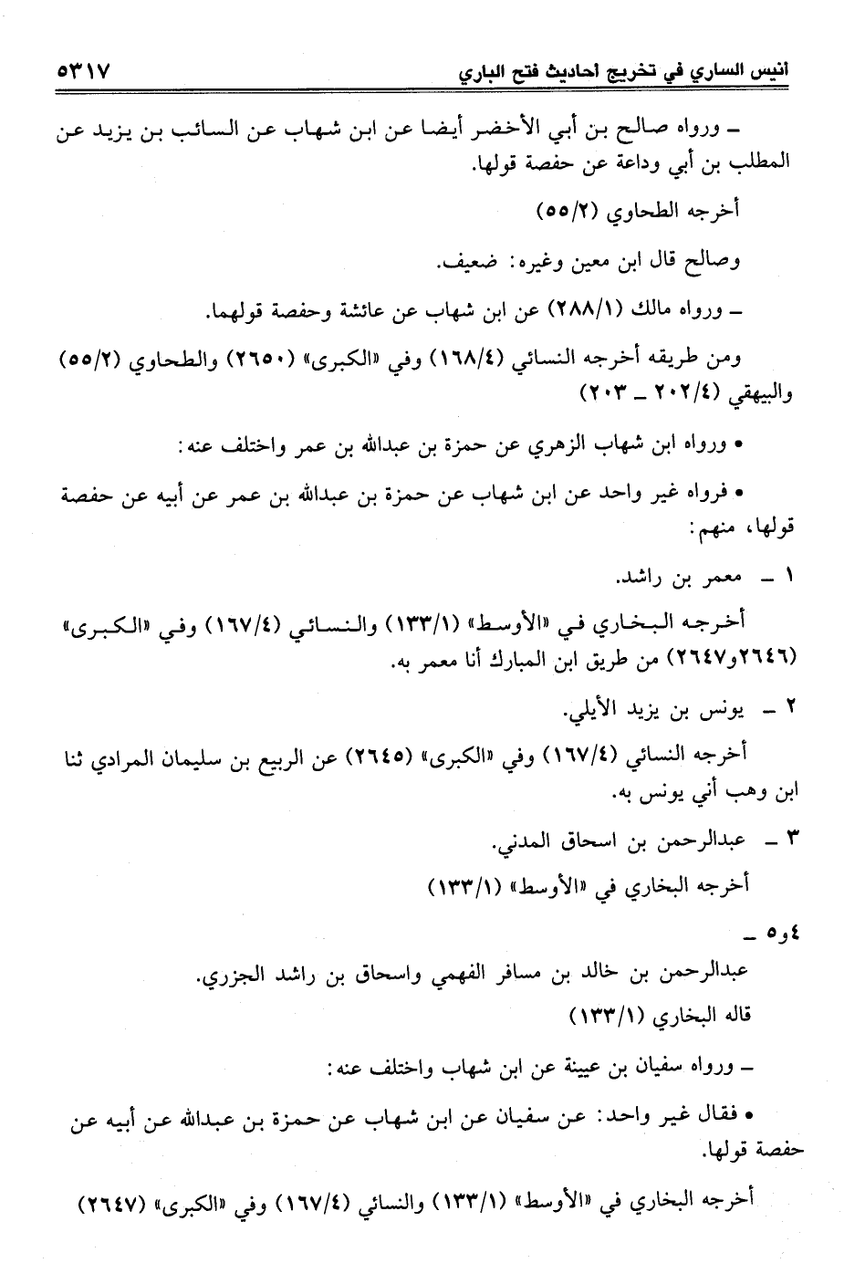 • فقال غير واحد: عن سفيان عن ابن شهاب عن حمزة بن عبد الله عن أبيه عن حفصة قولها.