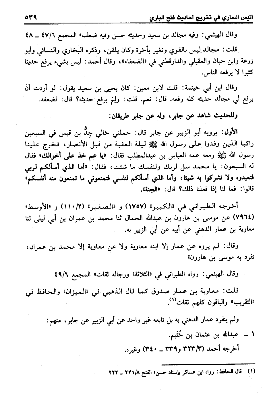 وقال الهيثمي: وفيه مجالد بن سعيد وحديثه حسن وفيه ضعف" المجمع 6/ 47 - 48