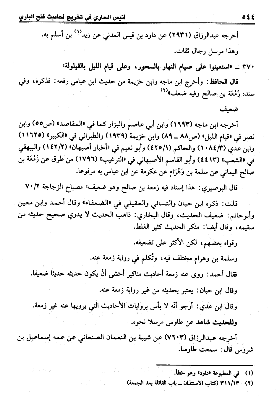 370 - "استعينوا على صيام النهار بالسحور، وعلى قيام الليل بالقيلولة"