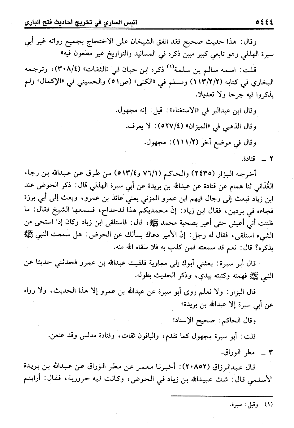 كتاب أنيس الساري (تخريج أحاديث فتح الباري) (اسم الجزء: 7)