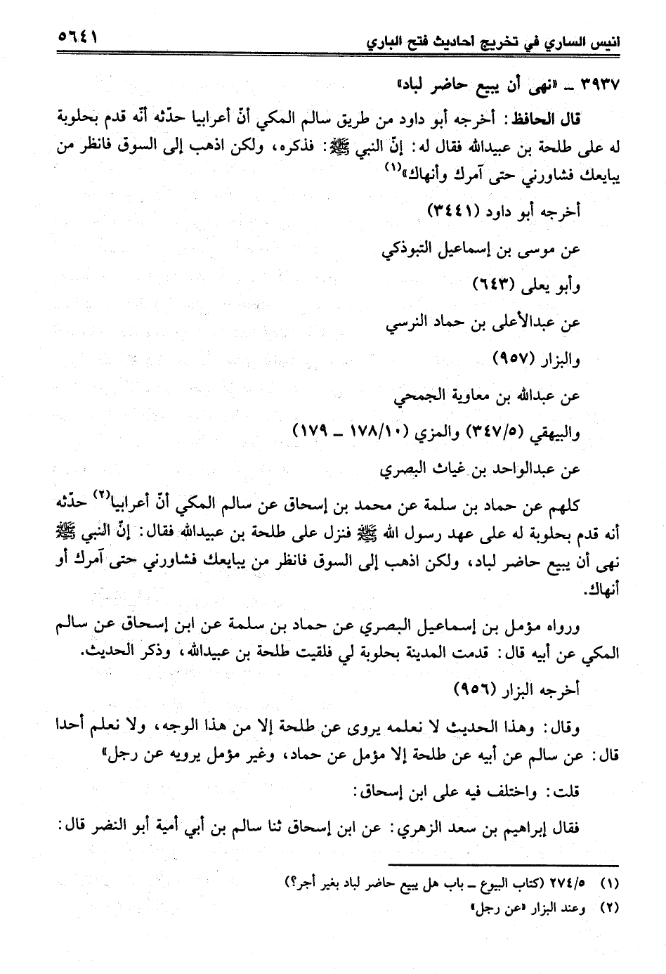 (¬1) 5/ 274 (كتاب البيوع- باب هل يبيع حاضر لباد بغير أجر؟)