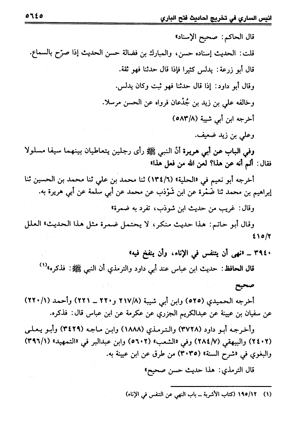 3940 - "نهى أن يتنفس في الأناء، وأن ينفخ فيه"