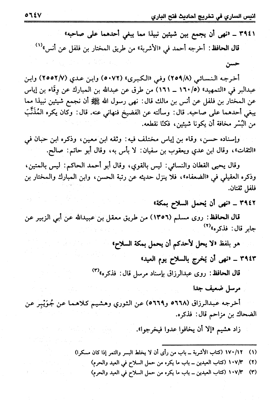3942 - "نهى أن يُحمل السلاح بمكة"