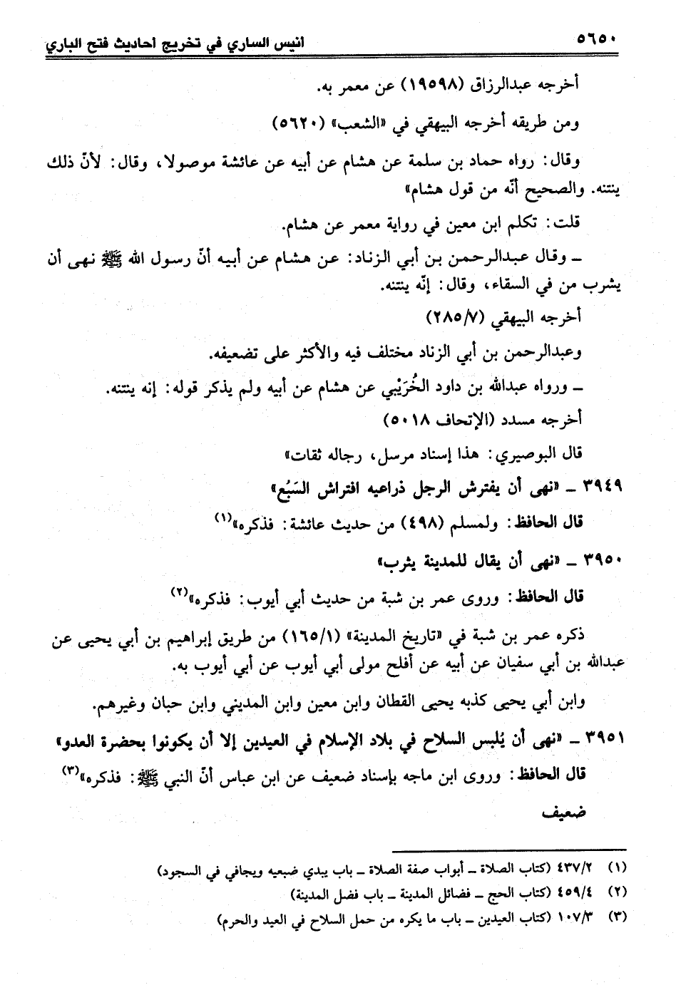 3951 - "نهى أن يُلبس السلاح في بلاد الإسلام في العيدين إلا أن يكونوا بحضرة العدو"