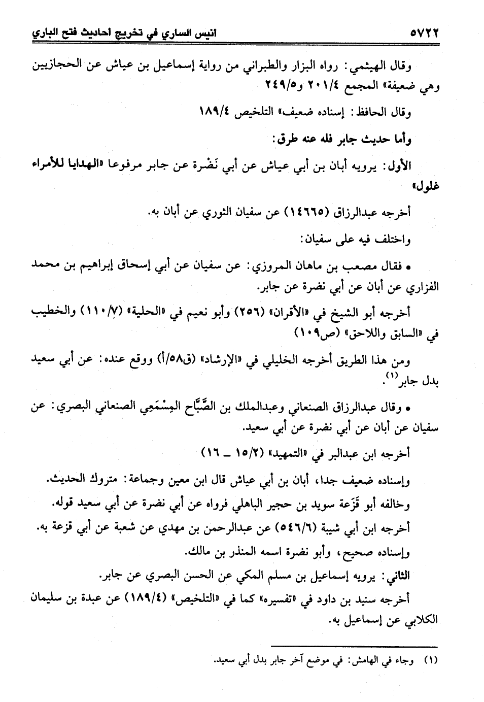 • وقال عبد الرزاق الصنعاني وعبد الملك بن الصَّبَّاح الِمسْمَعِي الصنعاني البصري: عن سفيان عن أبان عن أبي نضرة عن أبي سعيد.