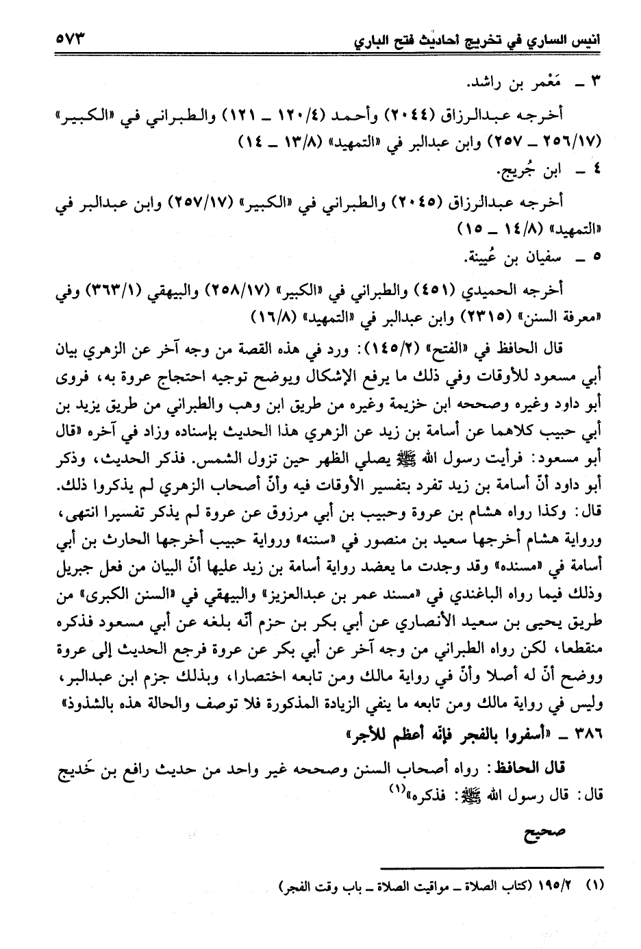 386 - "أسفروا بالفجر فإنّه أعظم للأجر"