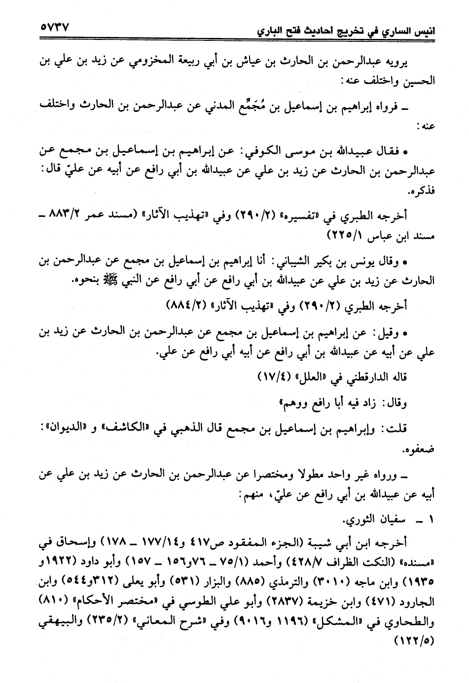 - ورواه غير واحد مطولا ومختصرا عن عبد الرحمن بن الحارث عن زيد بن علي عن أبيه عن عبيد الله بن أبي رافع عن عليّ، منهم: