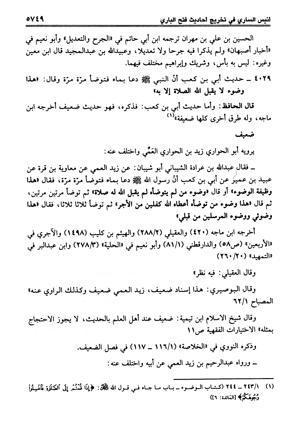 (¬1) 1/ 243 - 244 (كتاب الوضوء- باب ما جاء في قول الله -عز وجل-: {إِذَا قُمْتُمْ إِلَى الصَّلَاةِ فَاغْسِلُوا وُجُوهَكُمْ} [المَائدة: 6])