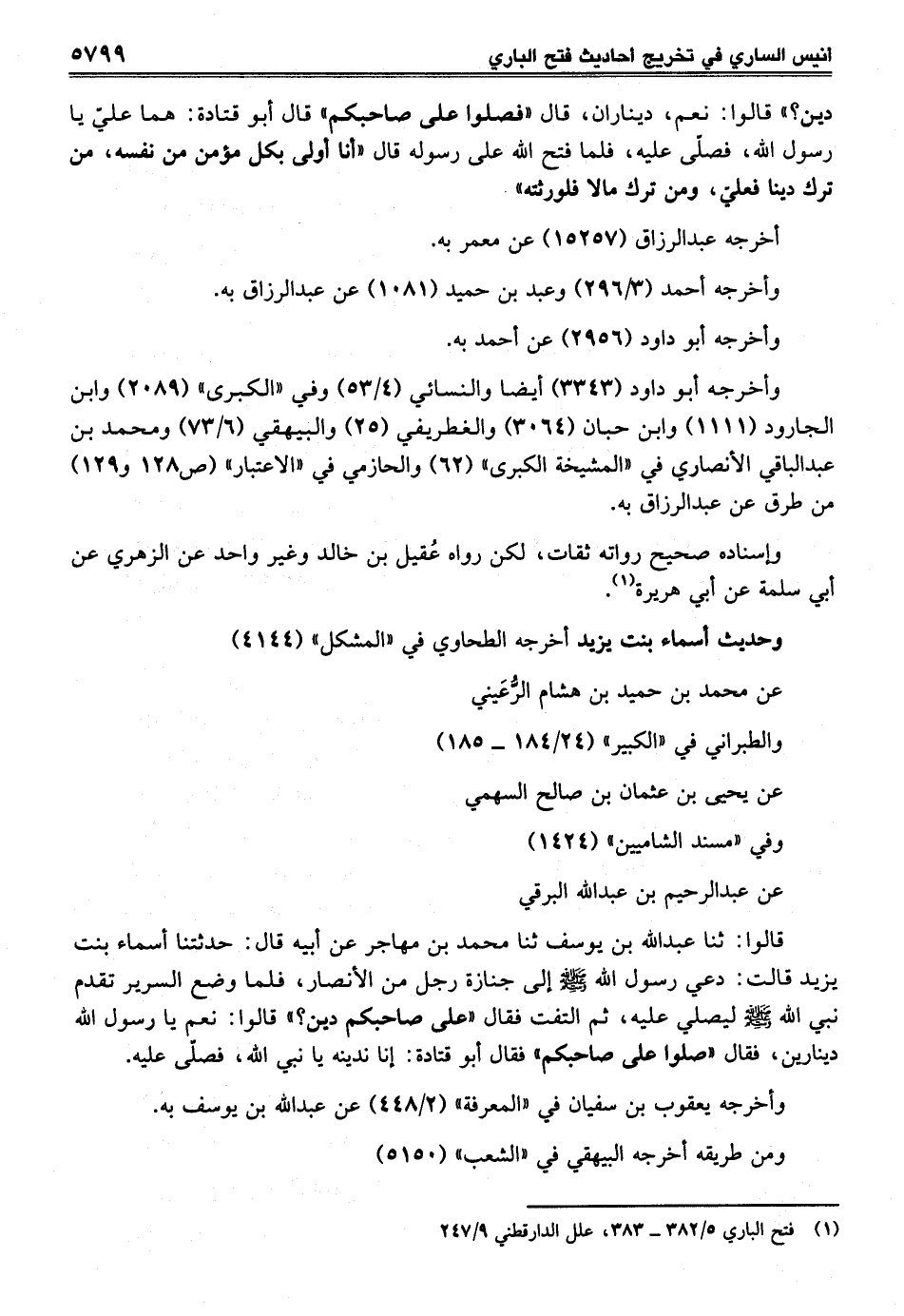 (¬1) فتح الباري 5/ 382 - 383، علل الدارقطني 9/ 247