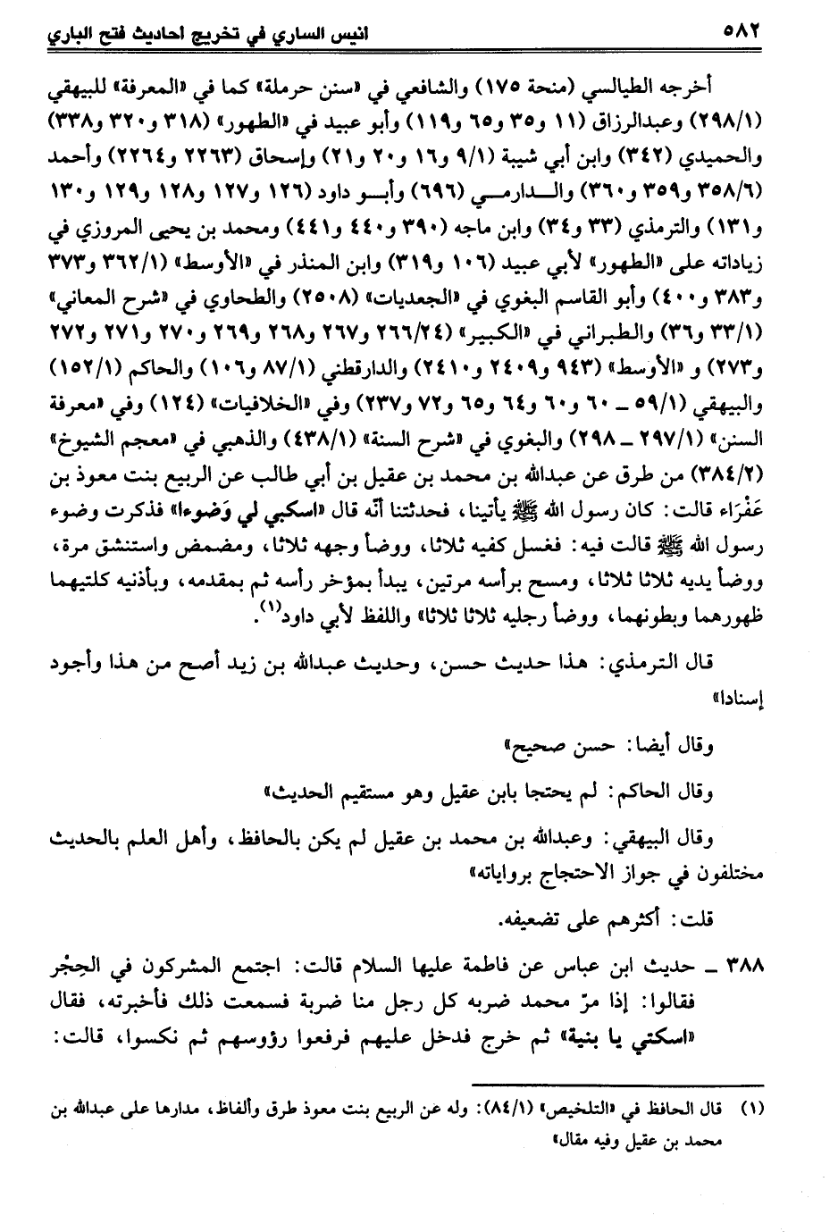 (¬1) قال الحافظ في "التلخيص" (1/ 84): وله عن الربيع بنت معوذ طرق وألفاظ، مدارها على عبد الله بن مُحَمَّدْ بن عقيل وفيه مقال"