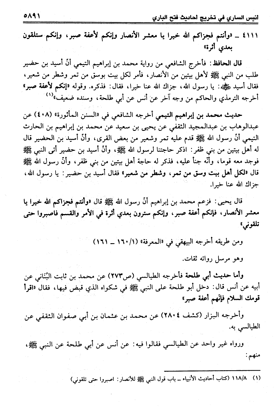 4111 - "وأنتم فجزاكم الله خيرا يا معشر الأنصار وإنكم لأعفة صبر، وإنكم ستلقون بعدي أثرة"