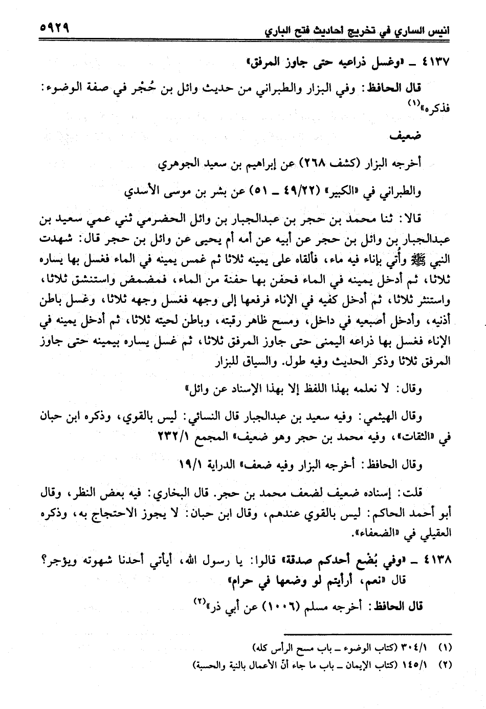4137 - "وغسل ذراعيه حتى جاوز المرفق"