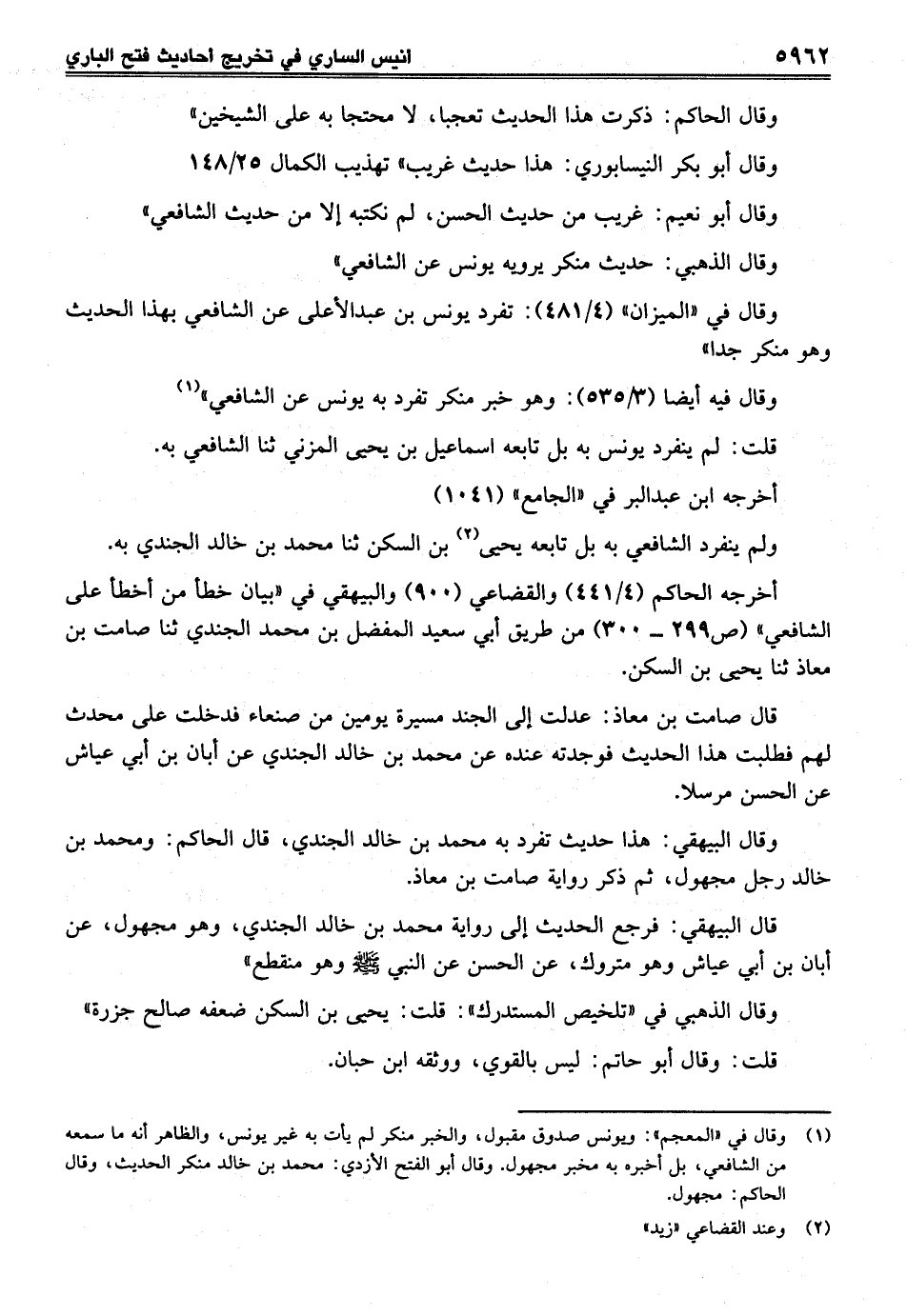 (¬1) وقال في "المعجم": ويونس صدوق مقبول، والخبر منكر لم يأت به غير يونس، والظاهر أنه ما سمعه من الشافعي، بل أخبره به مخبر مجهول. وقال أبو الفتح الأزدي: محمد بن خالد منكر الحديث، وقال الحاكم: مجهول.