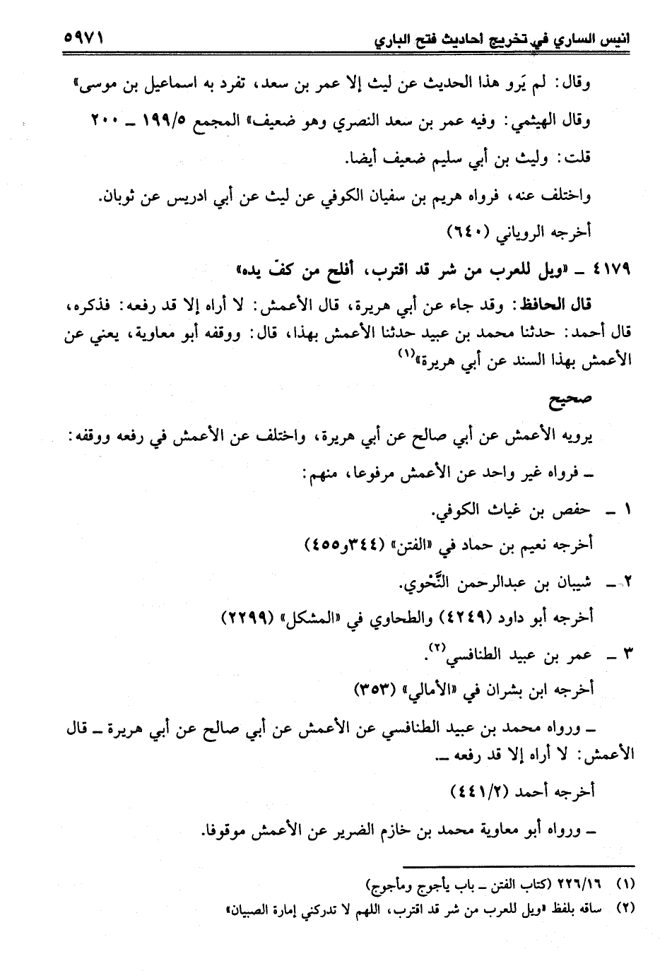 4179 - "ويل للعرب من شر قد اقترب، أفلح من كفّ يده"