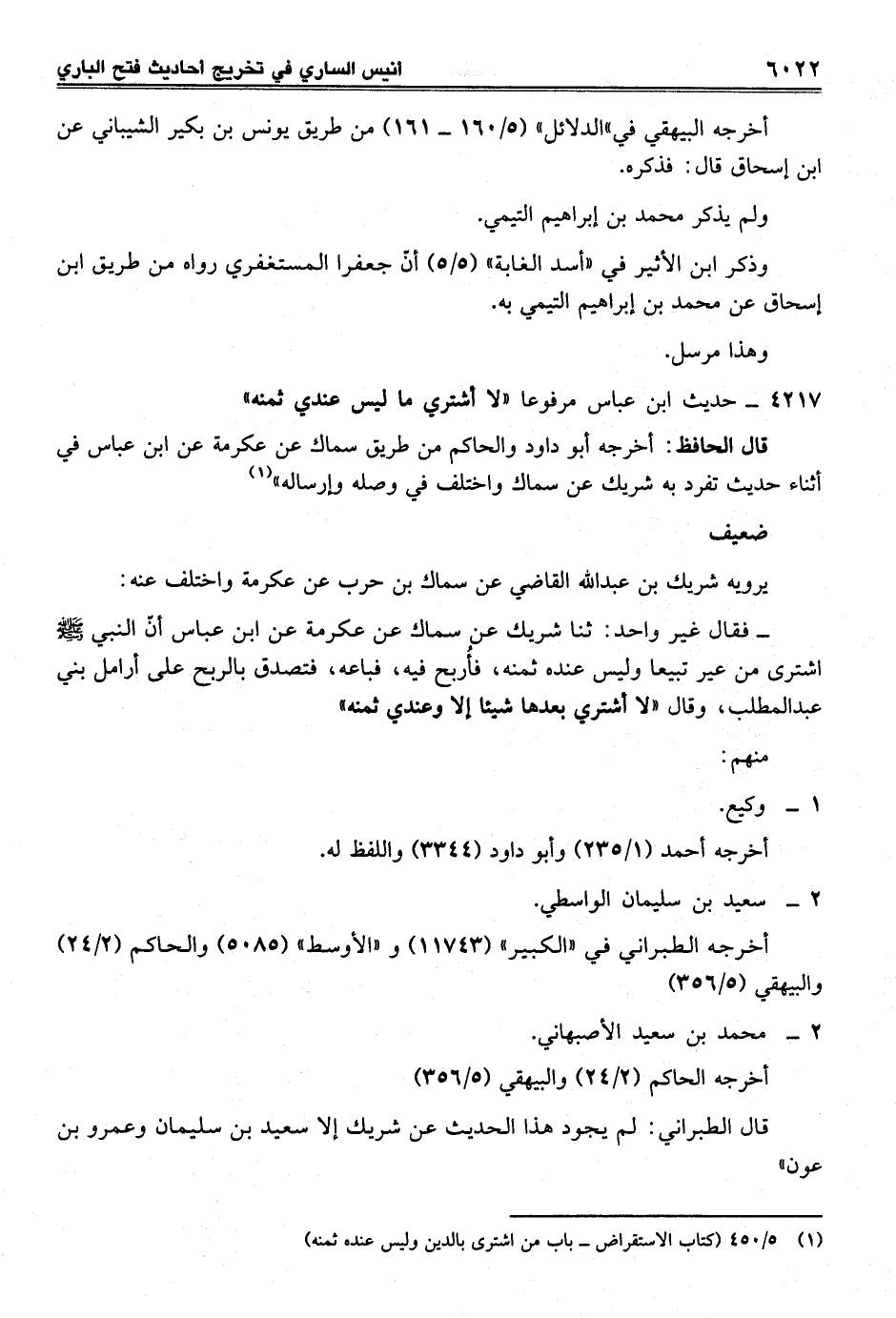 4217 - حديث ابن عباس مرفوعا "لا أشتري ما ليس عندي ثمنه"