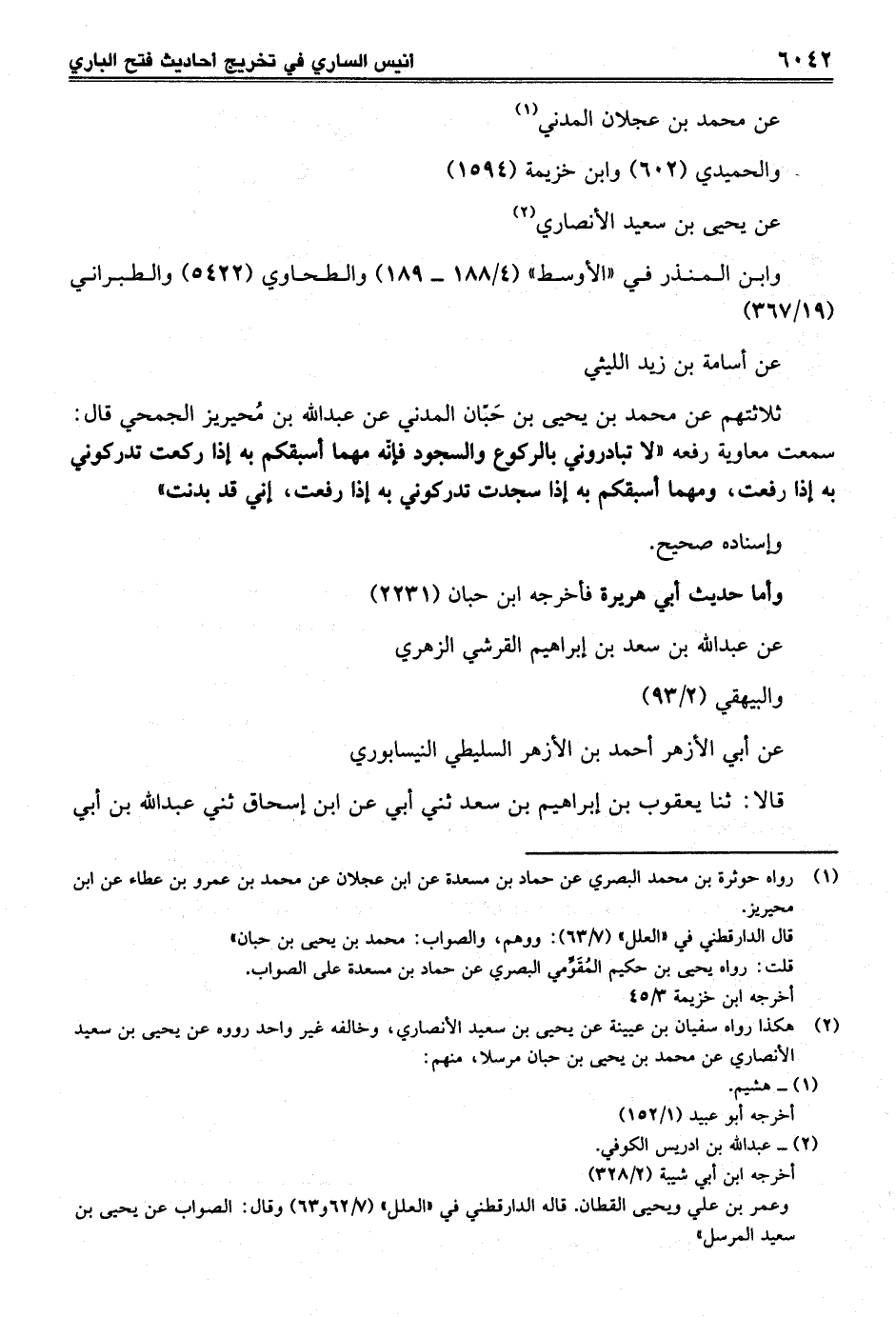 ثلاثتهم عن محمد بن يحيى بن حَبَّان المدني عن عبد الله بن مُحيريز الجمحي قال: سمعت معاوية رفعه "لا تبادروني بالركوع والسجود فإنّه مهما أسبقكم به إذا ركعت تدركوني به إذا رفعت، ومهما أسبقكم به إذا سجدت تدركوني به إذا رفعت، إني قد بدنت"