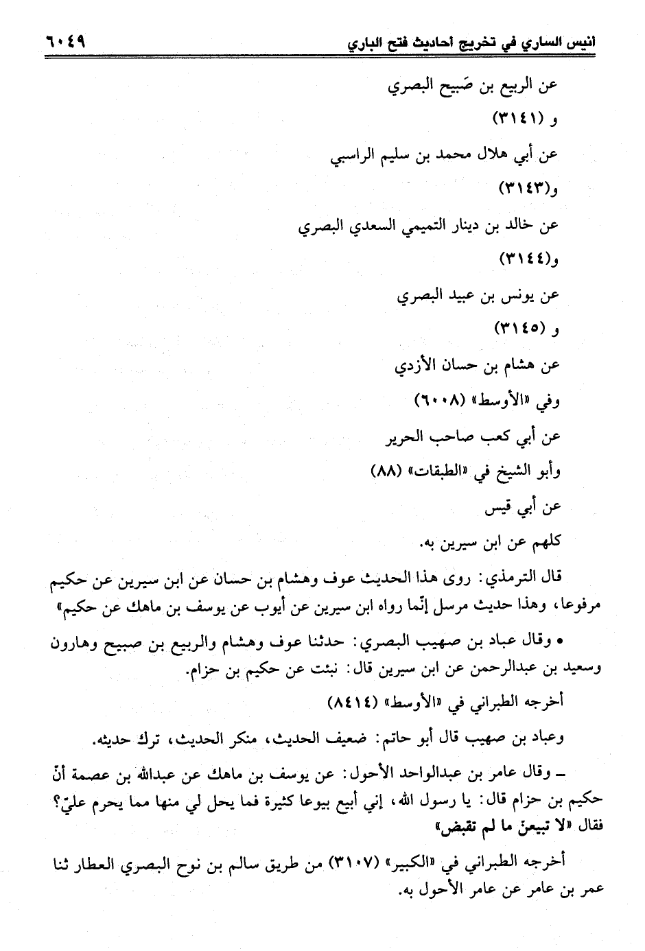 • وقال عباد بن صهيب البصري: حدثنا عوف وهشام والربيع بن صبيح وهارون وسعيد بن عبد الرحمن عن ابن سيرين قال: نبئت عن حكيم بن حزام.