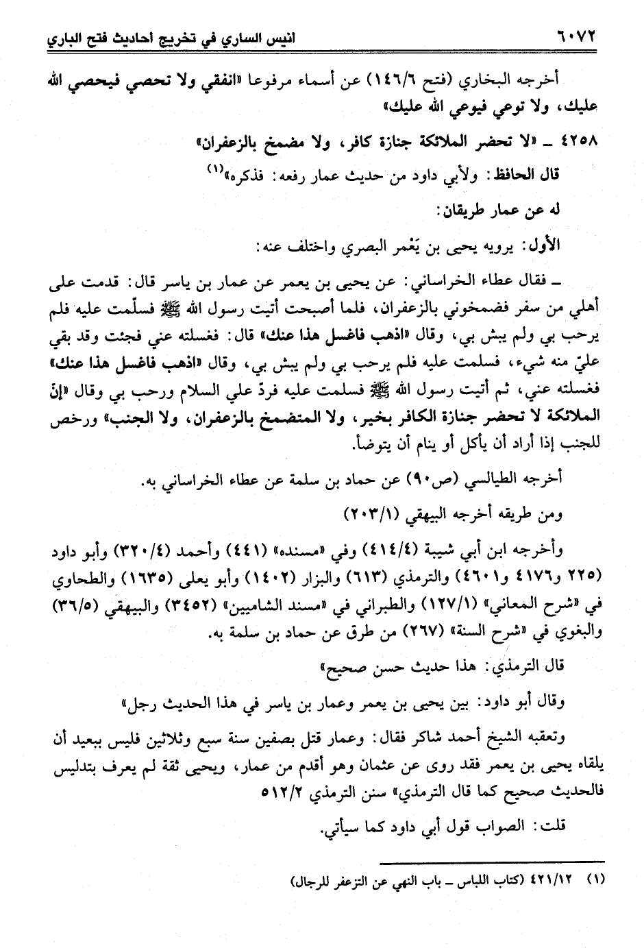 4258 - "لا تحضر الملائكة جنازة كافر، ولا مضمخ بالزعفران"