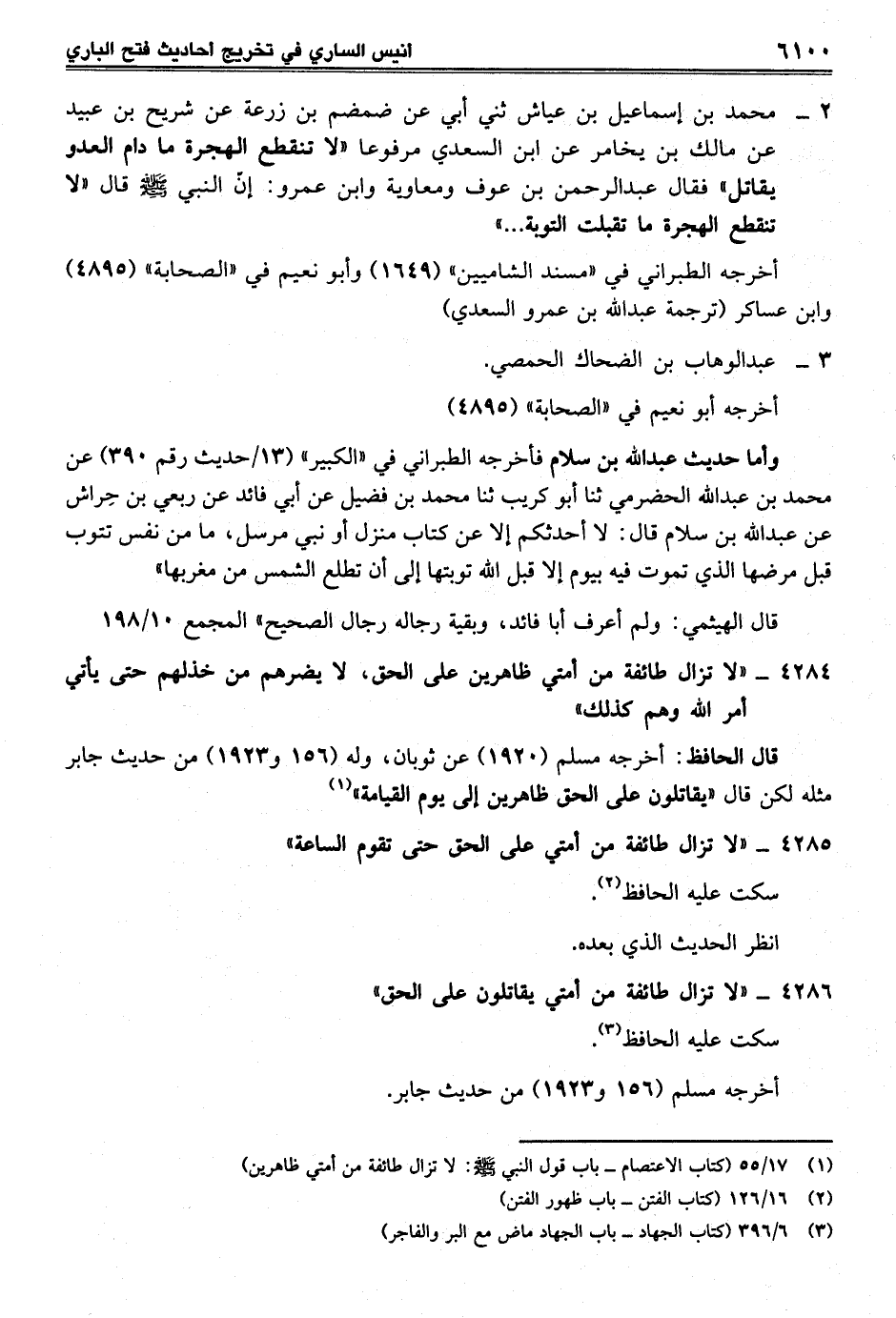 4286 - "لا تزال طائفة من أمتي يقاتلون على الحق"