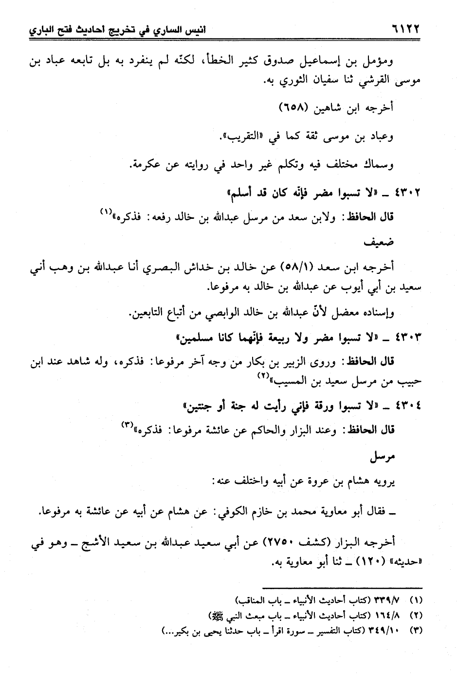 4303 - "لا تسبوا مضر ولا ربيعة فإنّهما كانا مسلمين"