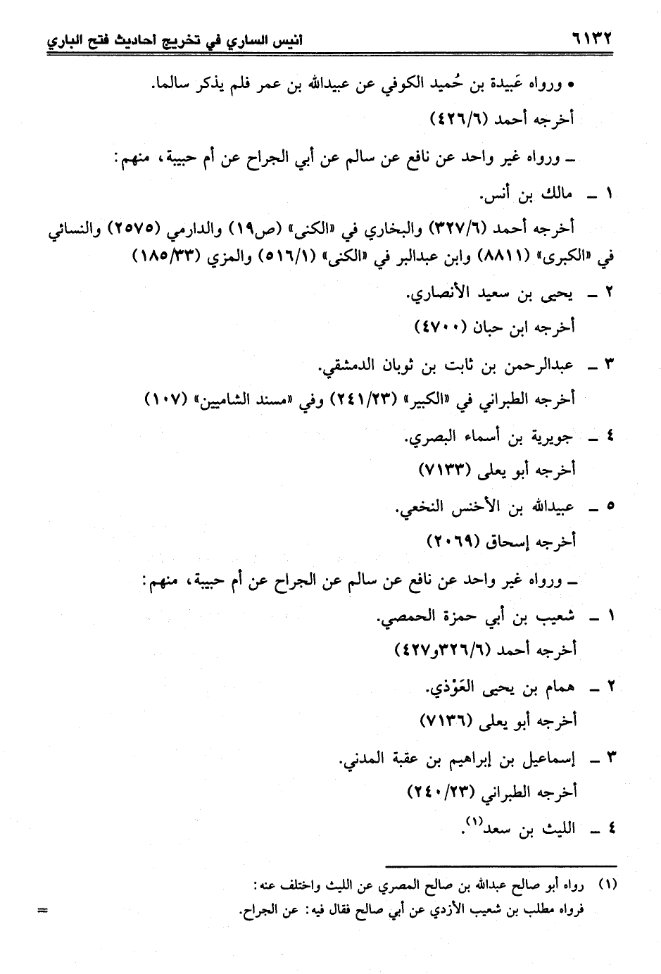 - ورواه غير واحد عن نافع عن سالم عن الجراح عن أم حبيبة، منهم: