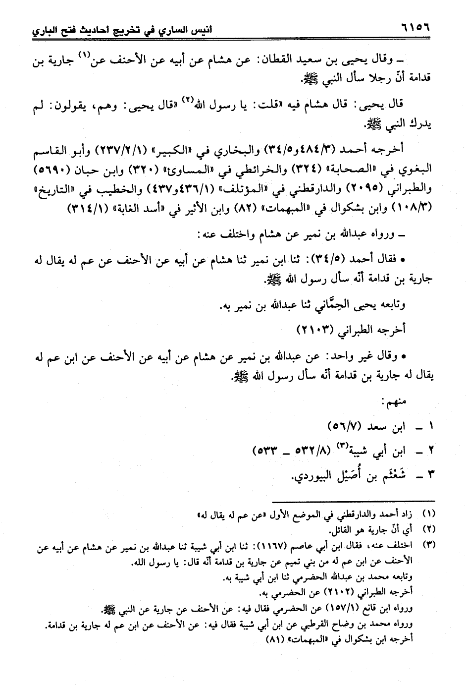• وقال غير واحد: عن عبد الله بن نمير عن هشام عن أبيه عن الأحنف عن ابن عم له يقال له جارية بن قدامة أنّه سأل رسول الله -صلى الله عليه وسلم-.