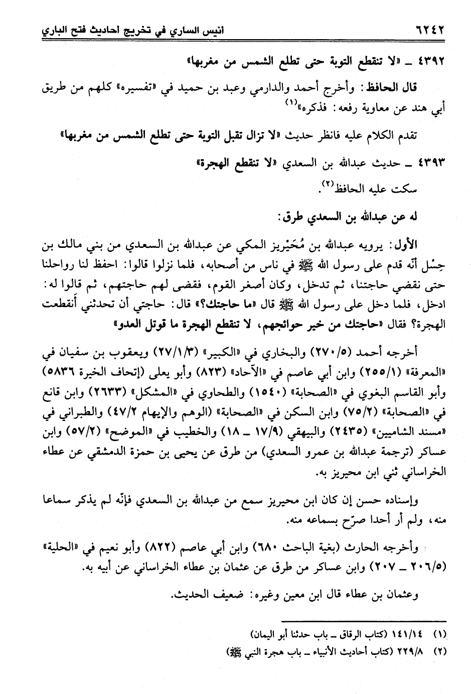 4393 - حديث عبد الله بن السعدي "لا تنقطع الهجرة"