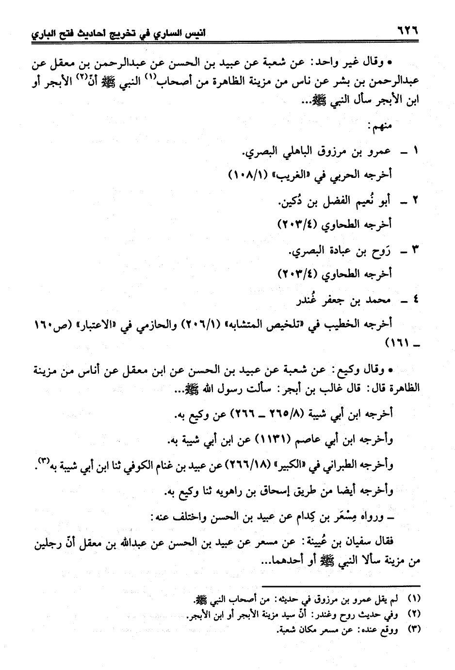 • وقال غير واحد: عن شعبة عن عبيد بن الحسن عن عبد الرحمن بن معقل عن عبد الرحمن بن بشر عن ناس من مزينة الظاهرة من أصحاب (¬1) النبي - صلى الله عليه وسلم - أنّ (¬2) الأبجر أو ابن الأبجر سأل النبي - صلى الله عليه وسلم - ...
