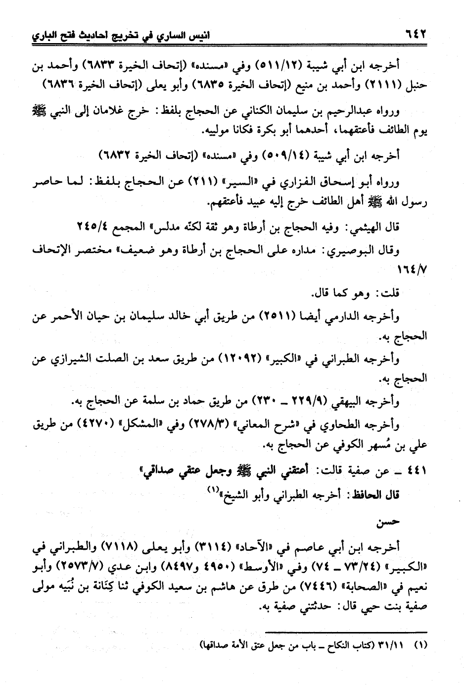 441 - عن صفية قالت: أعتقني النبي - صلى الله عليه وسلم - وجعل عتقي صداقي"