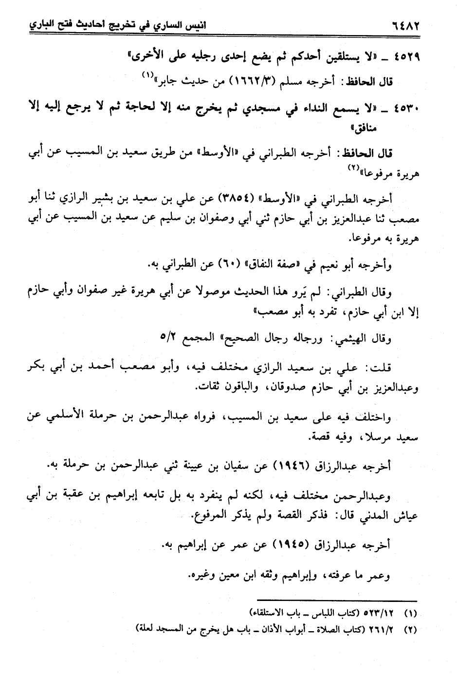 4530 - "لا يسمع النداء في مسجدي ثم يخرج منه إلا لحاجة ثم لا يرجع إليه إلا منافق"