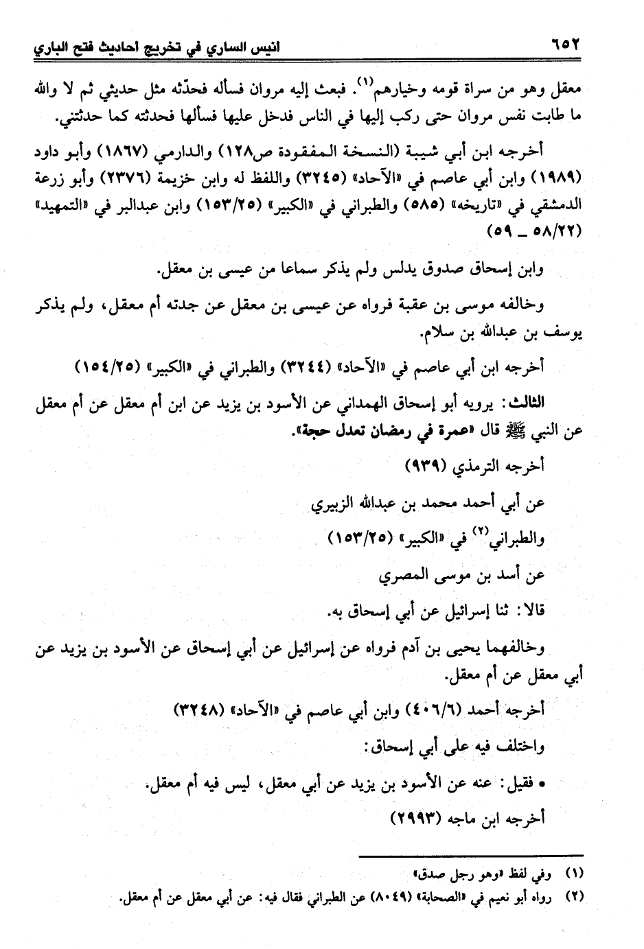 الثالث: يرويه أبو إسحاق الهمداني عن الأسود بن يزيد عن ابن أم معقل عن أم معقل عن النبي - صلى الله عليه وسلم - قال "عمرة في رمضان تعدل حجة".