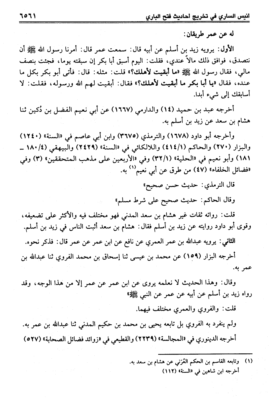 قلت: رواته ثقات غير هشام بن سعد المدني فهو مختلف فيه والأكثر على تضعيفه، وقوى أبو داود روايته عن زيد بن أسلم فقال: هشام بن سعد أثبت الناس في زيد بن أسلم.