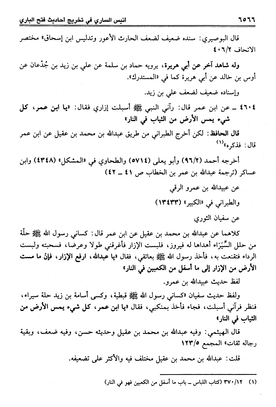 (¬1) 12/ 370 (كتاب اللباس - باب ما أسفل من الكعبين فهو في النار).