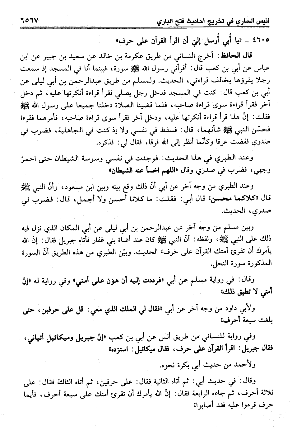 4605 - "يا أُبي أُرسل اليّ أن اقرأ القرآن على حرف".