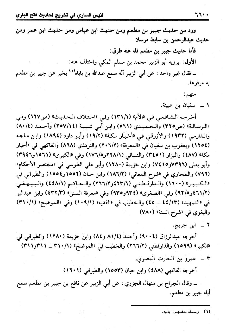 - فقال غير واحد: عن أبي الزبير أنَّه سمع عبد الله بن باباه (¬1) يخبر عن جبير بن مطعم به مرفوعًا.
