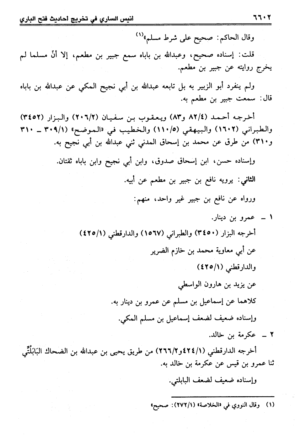 قلت: إسناده صحيح، وعبد الله بن باباه سمع جبير بن مطعم، إلا أنّ مسلما لم يخرج روايته عن جبير بن مطعم.